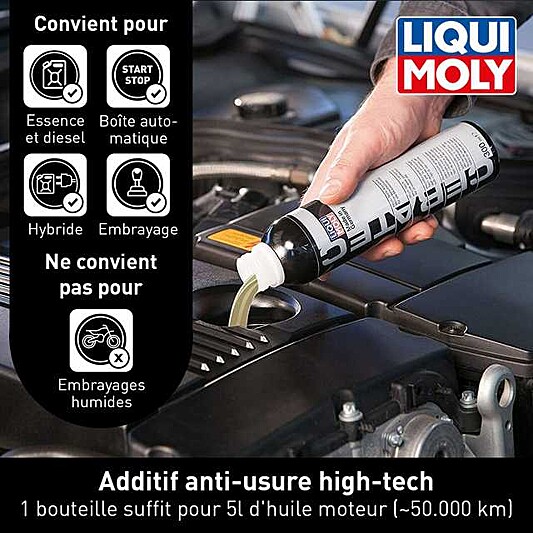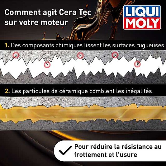 Propulsez la protection de votre moteur dans une nouvelle dimension avec LIQUI MOLY Cera Tec. Contrairement aux additifs classiques, Cera Tec combine un lubrifiant solide céramique de haute technologie avec des agents de protection chimique.